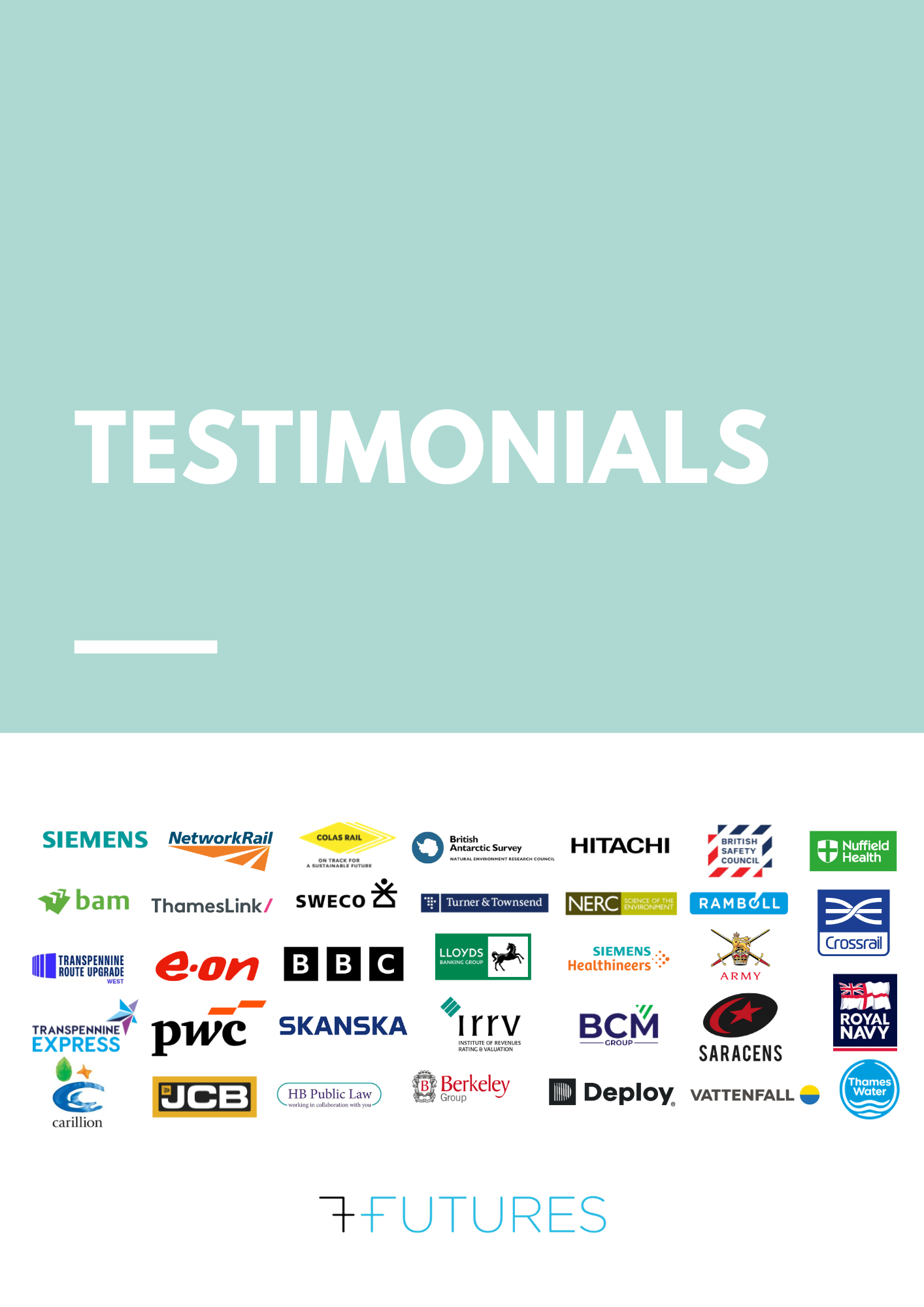 Trusted by organisations across rail, construction, engineering, energy and infrastructure, 7Futures delivers science-led programmes that strengthen people, performance and culture.